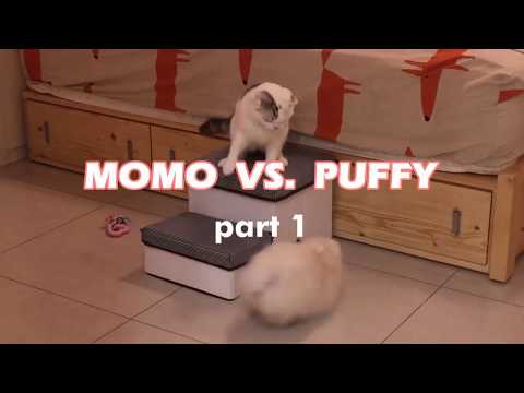 Momo是乖巧又穩重沈靜的貓咪,Puffy是活潑淘氣的小狗 雖然個性大不同,但是他們還是喜歡在一起 puffy不在時,momo會去找他 puffy就更不用說了,簡直愛上momo,常常熱情得讓momo招...